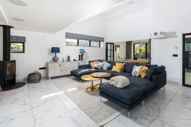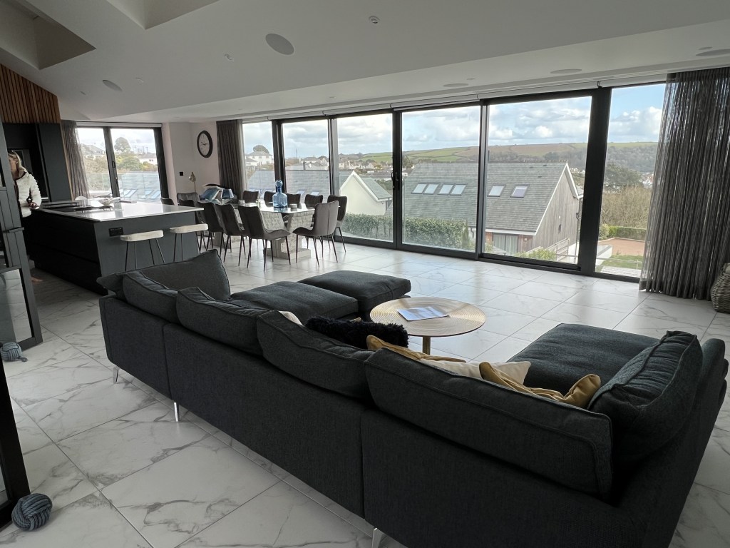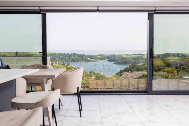 The first-floor living space at Seabreeze is simply breathtaking, strategically designed to capture the expansive views of St Mawes. Cosy up by the wood burner while enjoying your favourite tunes on the Sonos speaker, or step out onto the glass-fronted balcony for evening drinks with a view of the picturesque sunset.
